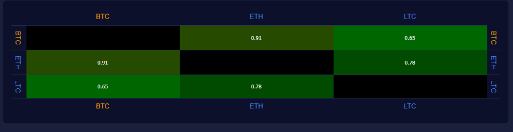 The cryptocurrency correlation table serves the same purpose as our conventional market correlation module. It is based on the idea that cryptocurrency investors can reduce their digital portfolio volatility by merely holding coins or tokens that are not perfectly correlated. Macroaxis provides an easy way to lookup pair correlation opportunities across multiple coins and exchanges using correlation tables.Every exchange in the market has its asset selection, and the market correlation between these assets is essential in building a portfolio that maximizes the risk-adjusted return on your crypto investing strategies. The correlation tables below can help investors find the exchange with the right combination of assets based on their objectives.Choosing the best crypto exchanges is a crucial prerequisite in successful cryptocurrency trading. If you err when finding the best exchanges, the risks of losses and delays in payments are imminent. Due diligence when choosing the right platform to use is thus vital to protect your cryptocurrency investment. The goal of any cryptocurrency investor is maximizing return and minimizing risk. One strategy for maximizing risk-adjusted returns is selecting the exchange that offers trading pairs that are not perfectly correlated to each other. Additionally, investors can reduce their exposure to individual coin risk by holding a diversified digital asset portfolio on a given exchange. Diversification will allow for the same portfolio return with reduced risk. The correlation screener will help you find relationships between any cryptocurrency on a given exchange, enabling you to manage your cryptocurrency portfolio risk more effectively.