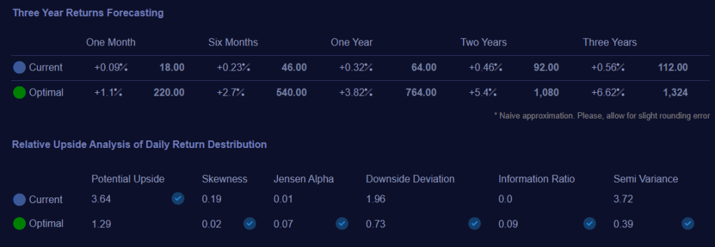 The below table shows technical indicators of the assets from the current unweighted theme. These indicators can be significantly improved after the theme is optimized. So, by diversifying this theme into an optimal portfolio, it is possible to reduce not only its total risk but also increase alpha, improve the information ratio and and increase the potential upside.