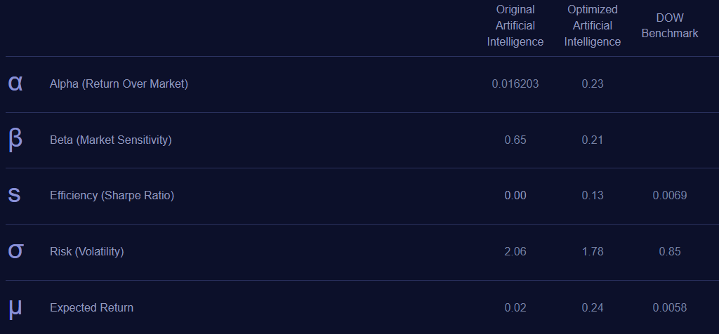 Below is one of the portfolios that could be originated from Artificial Intelligence idea. If you would invest 16,415 in this portfolio on April 18, 2021 and sell every single asset in this portfolio today you would earn a total of 3,586 from holding this portfolio or generate 21.84% return on investment over 360 days.