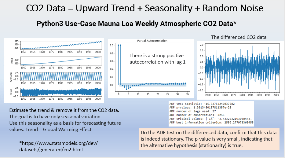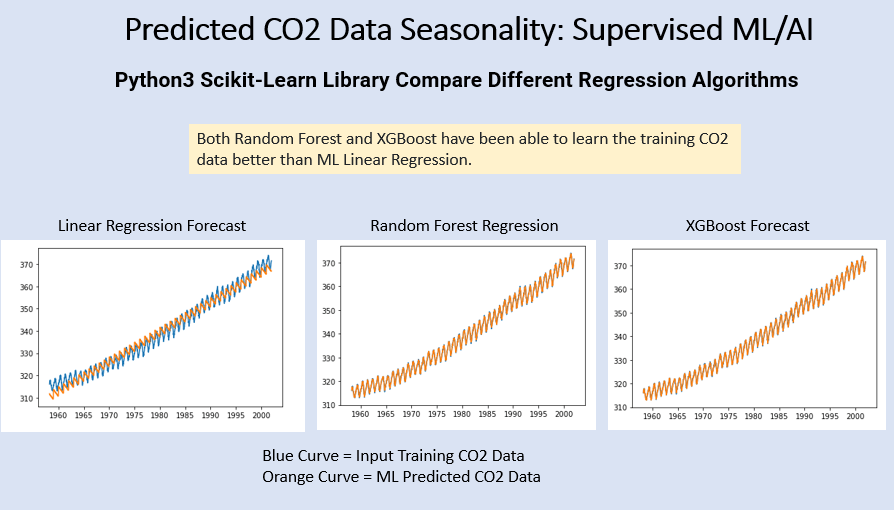 The graphs show monthly mean carbon dioxide measured at Mauna Loa Observatory, Hawaii. We extract some insights about the historical data and its statistical properties using the scikit-learn ML/AI Python library. We discovered that atmospheric CO2 concentration is expected to increase in future, highlighting the fact that emissions must be reduced, to ensure the prosperity of our species.
