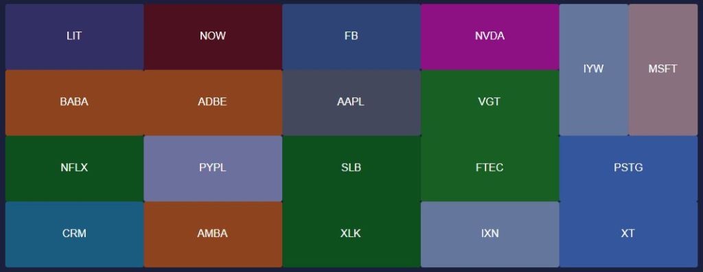 The Artificial Intelligence theme correlation table is a two-dimensional matrix that shows the correlation coefficient between all of the theme’s pairs of securities. The cells in the table are color-coded to highlight significantly positive and negative relationships. The correlation table represents the degree of relationship between the price movements of different assets included in the theme. In other words, it is a table showing correlation coefficients between all of the theme’s constituents. Each cell in the table shows the correlation between one pair of potential positions.