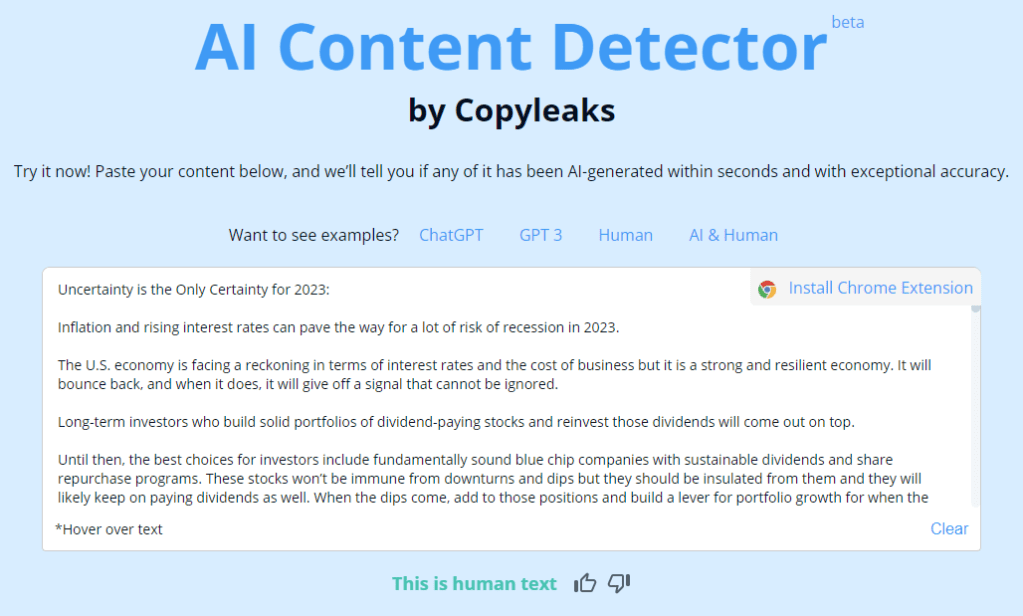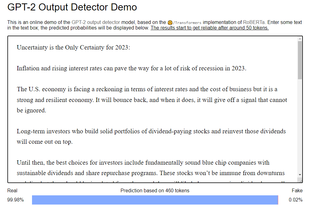 - Orange text represents text within the top-100 likelihood. This is text that maybe an AI would generate.
