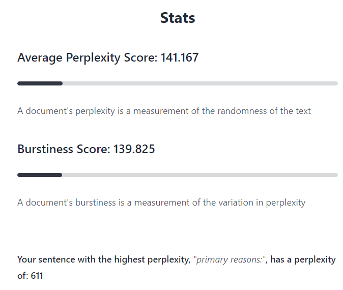 - Purple text is unfamiliar text to the detector. Also likely to be human-generated.