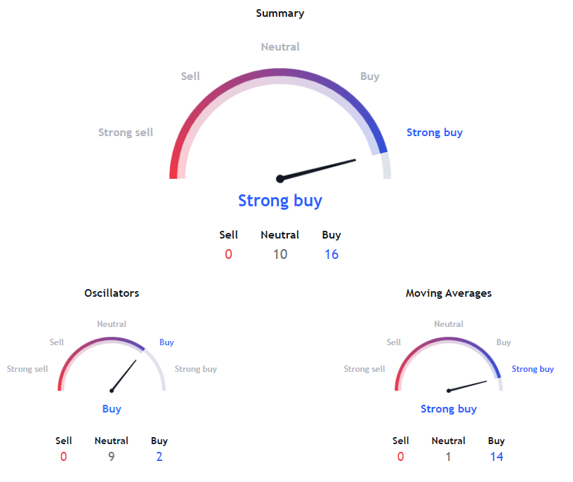 - TradingView: STRONG BUY weekly summary based on the most popular technical indicators, such as Moving Averages, Oscillators and Pivots; predicted 1Y average growth of ~25%.
