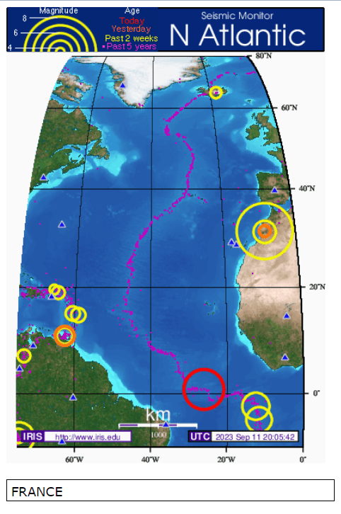 - Iris Seismic Monitor North Atlantic UTC 2023 Sept 11 20:05:42